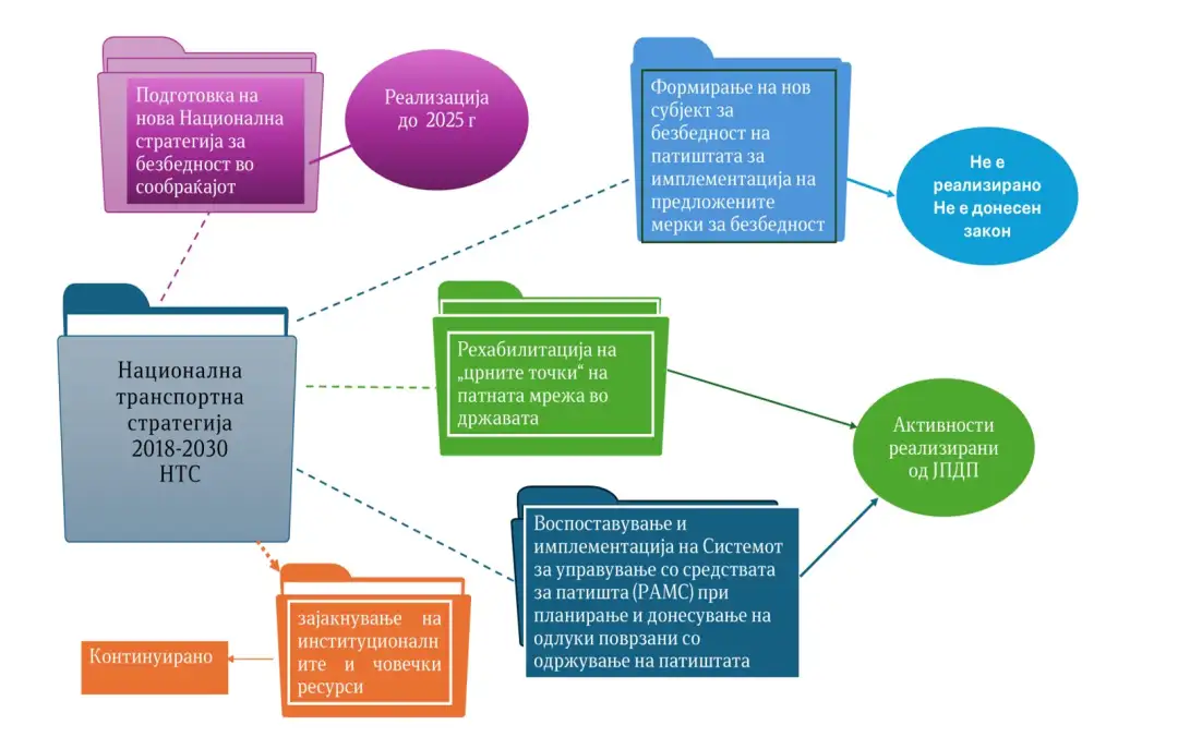 -Во отсуство на нова Национална стратегија, политиките за управување со безбедноста во сообраќајот Владата ги воспоставува и имплементира низ други стратешки и плански документи од областа во координација со други надлежни институции, се наведува во извештајот.