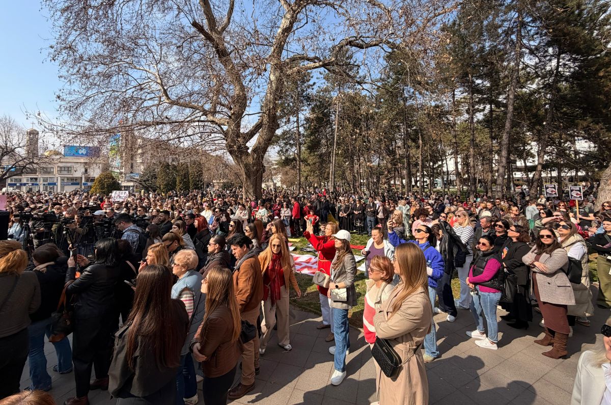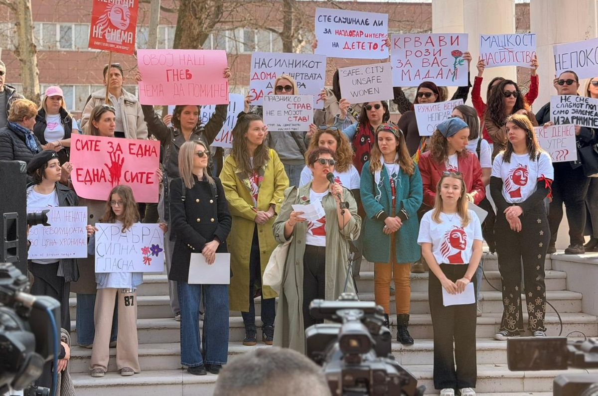 „Нема да има слобода, додека нема слободни жени“, „Бараме оставки“, „Убијци“, „Не ви се плашиме“, Правда за Ивана, „Правда за Катја“, „Правда за Росица“, беа само дела од паролите и извиците кои граѓаните во огромен број ги испратија како пораки пред зградатата на Владата.