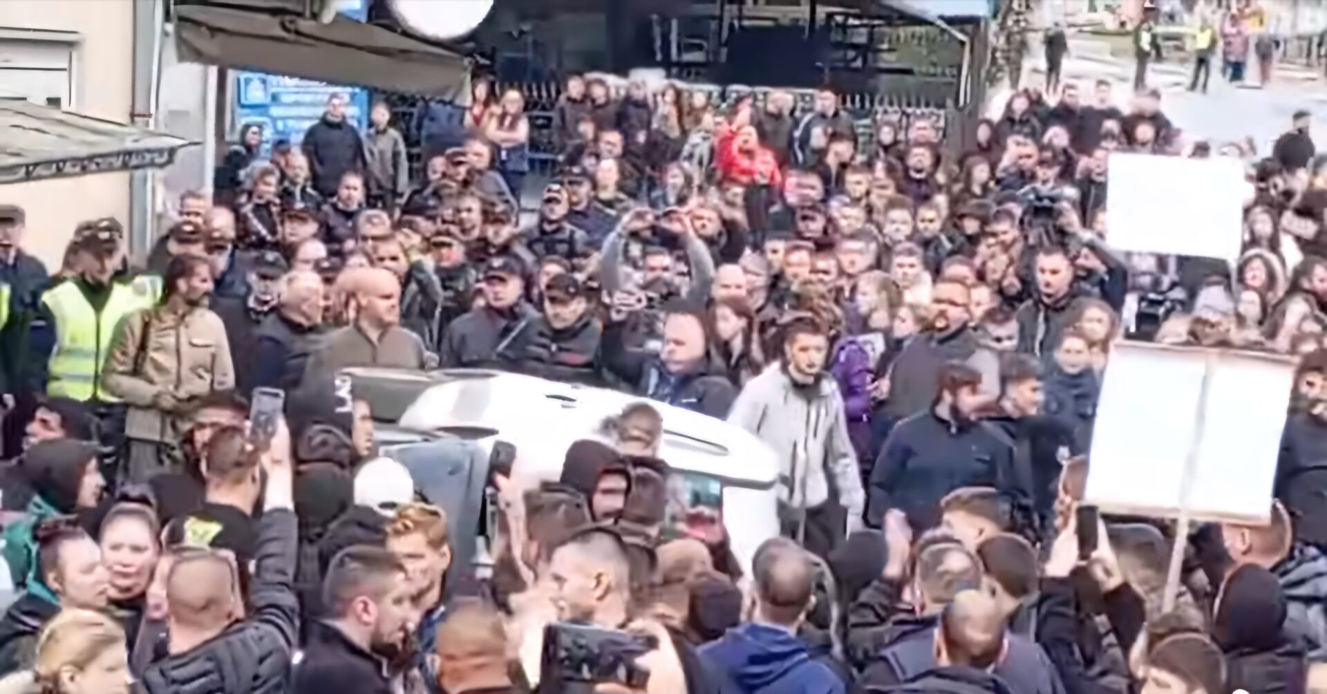 Граѓаните кои протестираа стигнаа до фирмата на сопственикот на дискотеката „Пулс“. Најпрвин фрлале камења кон излогот на сопственикот на дискотеката, а потоа го превртеле неговото возило.