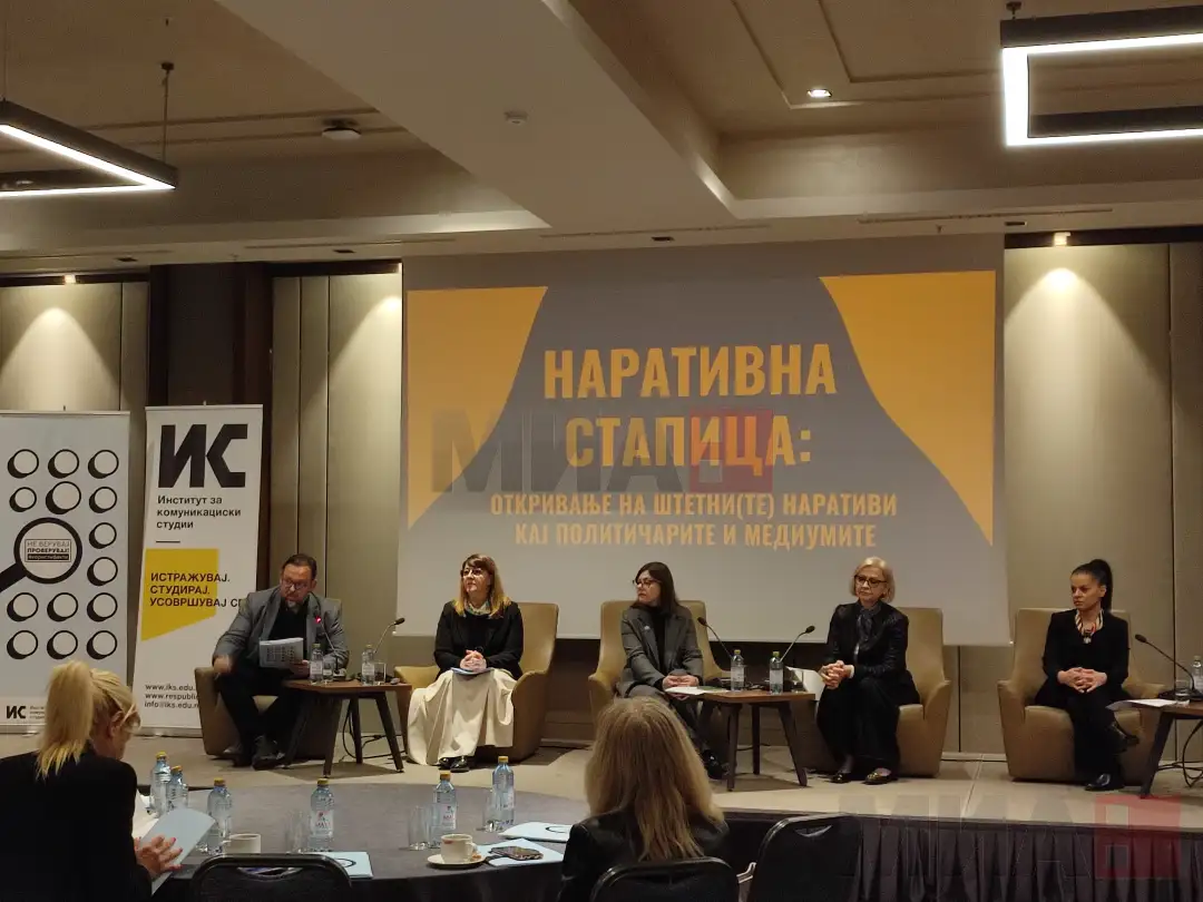 Изложеноста на граѓаните на штетни наративи е голема, покажува новата монографија „Наративна стапица: откривање на штетни(те) наративи кај политичарите и медиумите“ на Институтот за комуникациски студии (ИКС). Според анализата, доколку еден граѓанин ги следи интернет-страниците, порталите и фејсбук профилите на политичките актери, во еден ден ќе биде изложен на 33 штетни наративи. Дополнително, истражувањето открива дека политичарите често користат неологизми во својот дискурс, со цел манипулација и конструирање на јазична реалност.