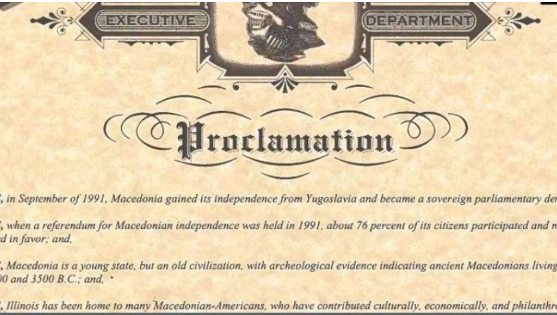 -Илиноис е дом на многу македонски Американци кои придонесуваат културно, економски и филантропски, се вели во известувањето.