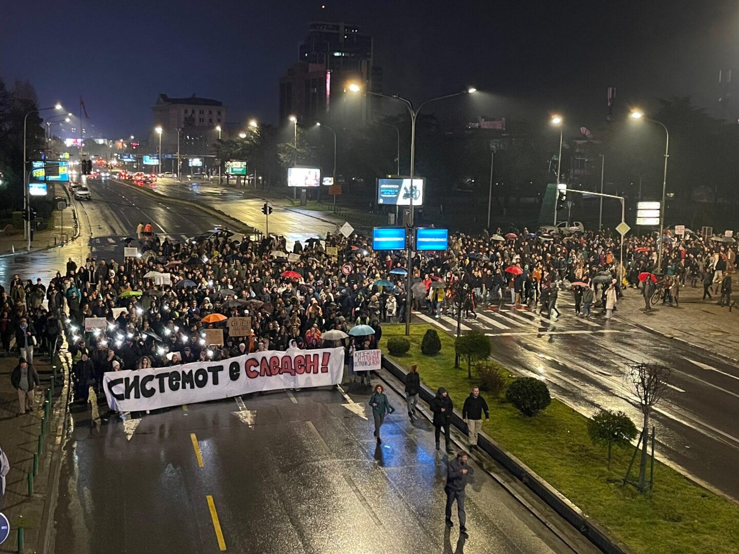 И покрај дождот над 10 илјади граѓани вечерва излегоа на улиците на Скопје барајќи транспарентна истрага и одговорност за трагедијата која минатата недела се случи во Кочани, каде што животот го загубија 59 млади луѓе.