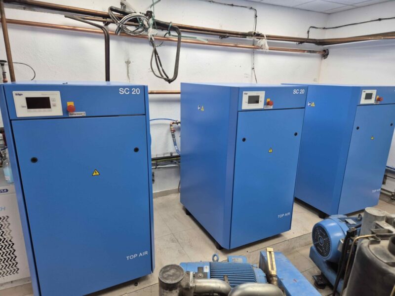 Монтирани и инсталирани се три компресори со потребната придружна опрема (резервоари, сепаратор, автоматски одвојувач на конденз електронски контролиран, циклонски сепаратор отстранување на влага и масло на излезен степен од компресор и друга опрема).