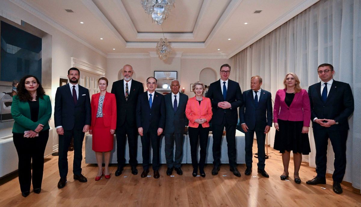 Претседателот на Владата на Северна Македонија Христијан Мицкоски, доцна синоќа од Тирана на социјалните мрежи објави фотографија од заедничката средба на лидерите на Западен Балкан со првенците на Европската Унија.