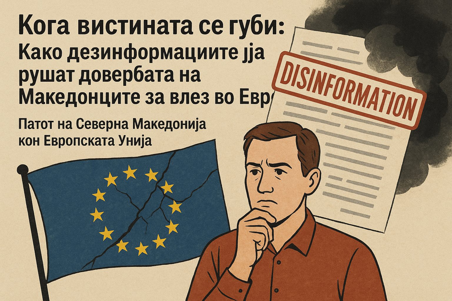 Патот на Северна Македонија кон Европската Унија е долг и исполнет со бројни предизвици, кои не само што се однесуваат на политичките и правните аспекти, туку и на сериозни општествени појави како што се дезинформациите. Тие го разнишуваат јавното мислење и ја поткопуваат довербата во европскиот процес. Во следната анализа, ќе ги разгледаме клучните моменти од европскиот пат на Северна Македонија, како и влијанието на дезинформациите врз перспективата на граѓаните за членство во Европската Унија.