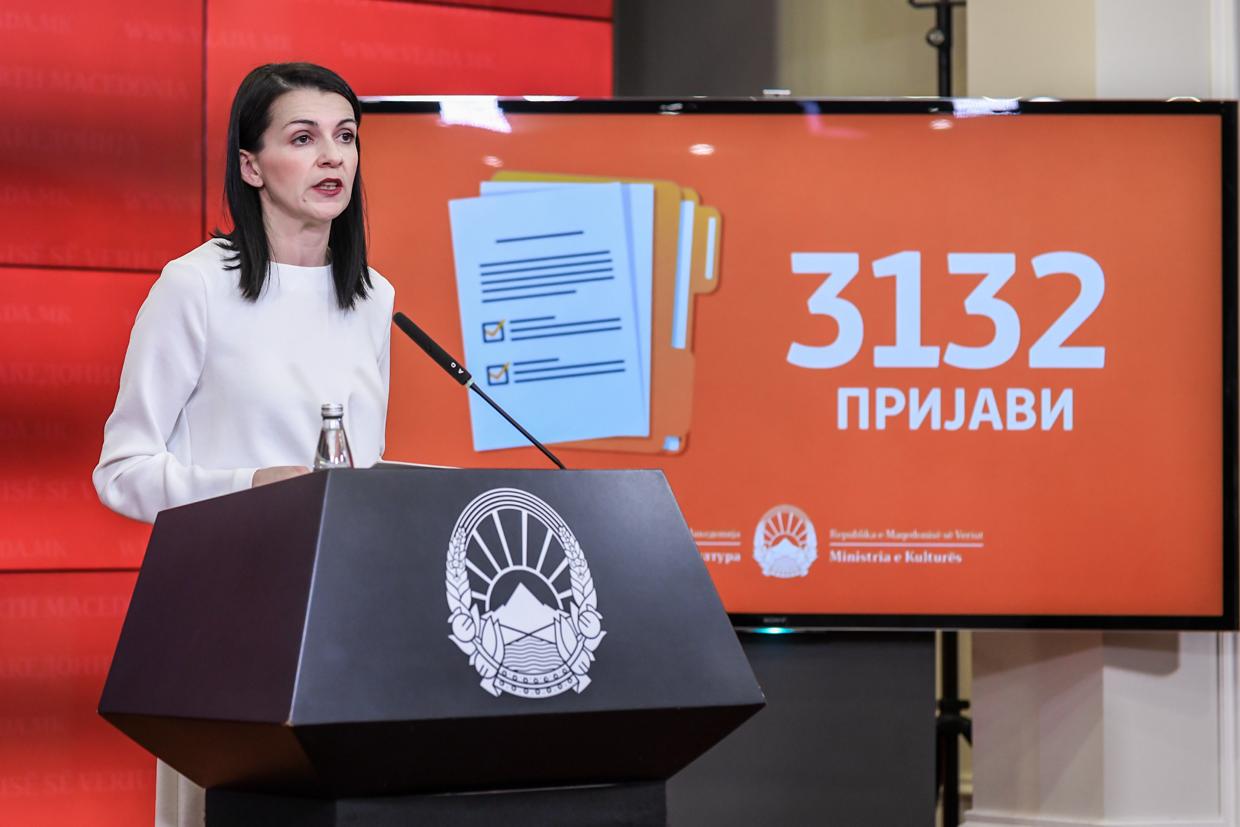 Министерката за култура соопшти дека годинава се пристигнати 3 132 пријави, од кои 313 се одбиени по административната проверка поради пријавување во несоодветна дејност, непотполна документација, а во некои случаи наместо документ бил приложен и празен лист. Од тие причини, таа ја поздрави секоја одлука на членовите на комисиите кои, како што рече, без двоумење поддржаа проекти што ги оценија како креативен блесок.