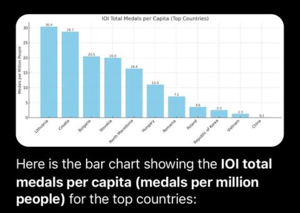 Северна Македонија е пред Романија, Полска, Јужна Кореја по број на медали пер капита, дури и пред Кина и Виетнам кои имаат најголем број медали, но многу помалку според бројот на жители.