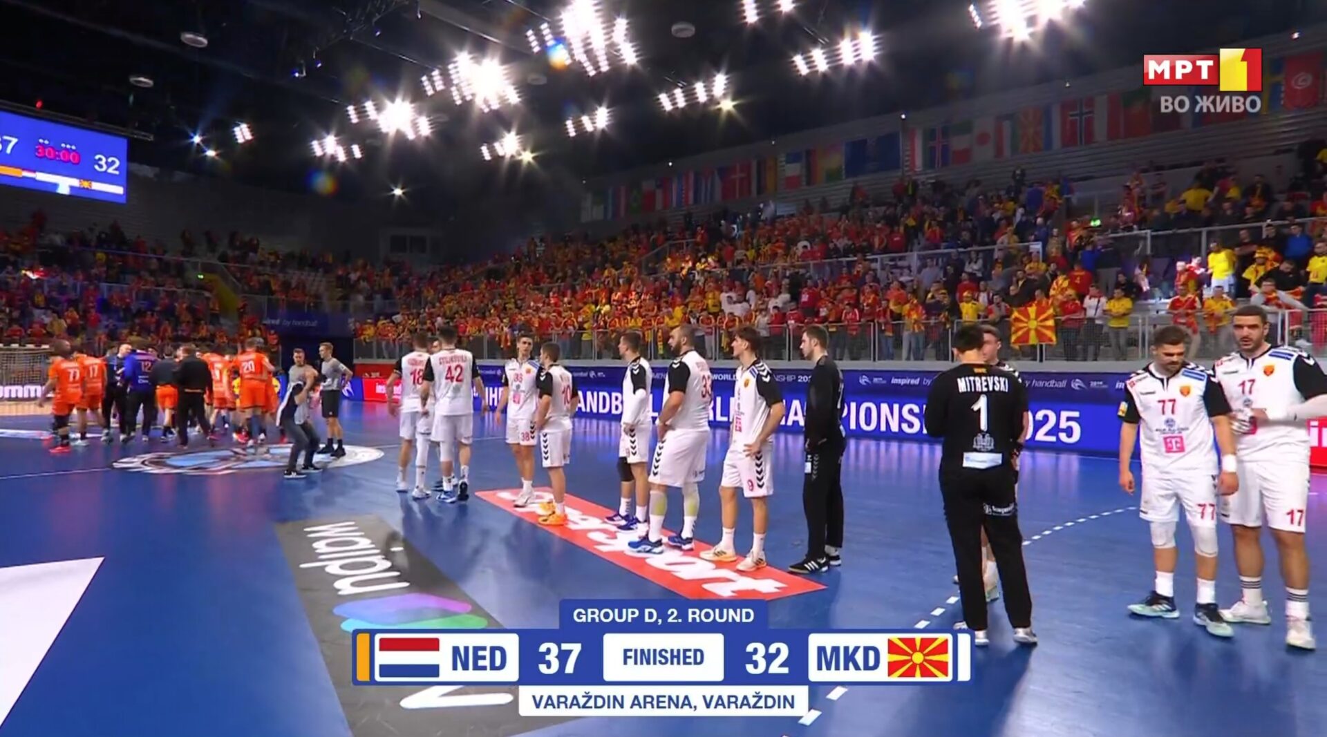 Ракометната репрезентација на Македонија со 37:32 беше поразена од селекцијата на Холандија во второто коло од прелиминарната фаза на Светското ракометно првенство.