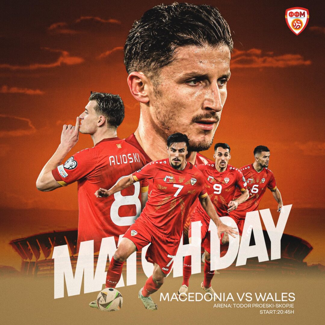 Македонската фудбалска репрезентација вечерва од 20:45 часот ја пречекува селекцијата на Велс во второто коло од квалификациите за Светското првенство 2026.