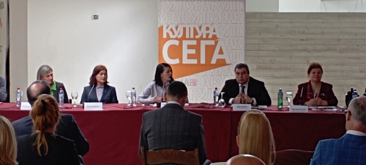 На панел дискусијата која беше во организација на Министерството за култура, меѓу другите се обратија и ресорната министерка Бисера Костадиновска-Стојчевска, амбасадорот на Европската Унија во нашата држава, Дејвид Гир, Елена Јованова-Грујовска од Институтот за македонски јазик „Крсте Мисирков“, Наташа Аврамоска од Институтот за македонска литература, Људмил Спасов од Советот за македонски јазик и Весна Мојсова-Чепишевска од Семинарот за македонски јазик, литература и култура.