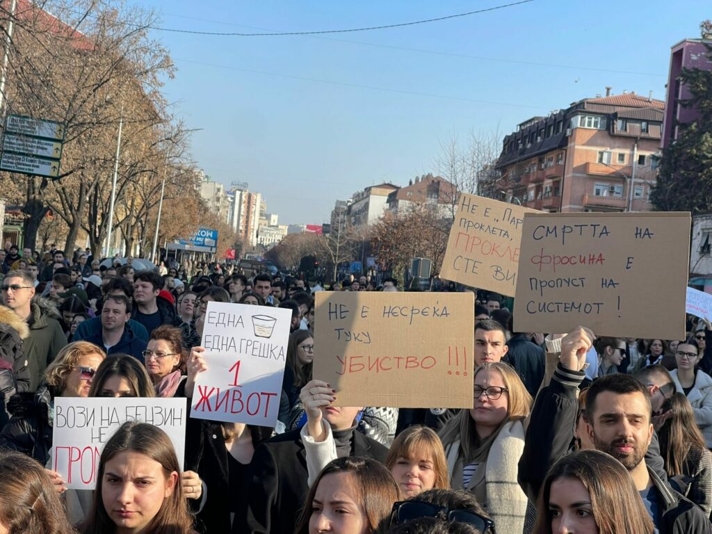 Со тага и гнев, илјадници граѓани денес се собраа на раскрсницата кај „Силбо“ во Скопје, барајќи правда за Фросина Кулакова, која трагично го загуби животот во сообраќајна несреќа. Насобраните положија цвеќиња и запалија свеќи, додека улиците одекнуваа од извици за одговорност и правда.