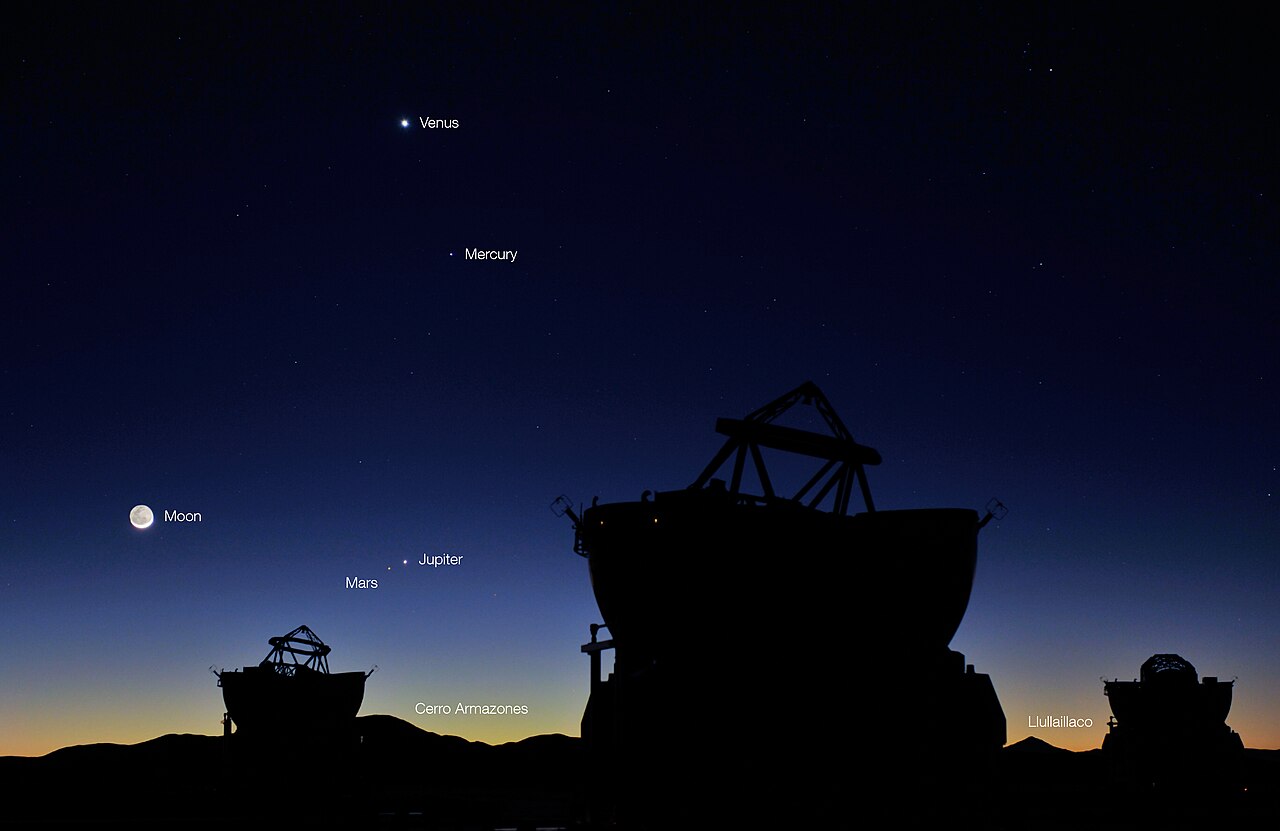 - 22:45–23:00 часот (CEST) – Скопје и цела Македонија: Месечината (77 % осветленост, опаѓачка гиблија) излегува во 22:46 ч. Сатурн се појавува неколку минути претходно, малку понизок и десно од неа. Бидејќи се наоѓаат во соѕвездието Риби, барајте ги ниско над исток‑југоисток.