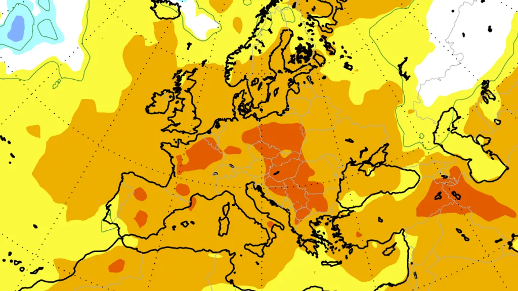 ECMWF предвидува натпросечни температури на поголем дел од континентот. Најтопли аномалии се очекуваат над централна Европа и делови од западот. Се очекуваат суви услови во областа на висок притисок. Малку повлажно ќе биде на крајниот север на Обединетото Кралство и Скандинавија.