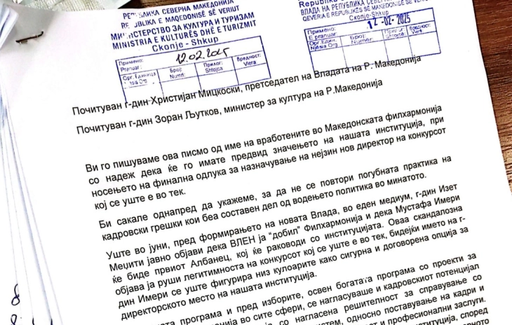 Нивното писмо до премиерот Христијан Мицкоски и министерот за култура Зоран Љутков, го објавуваме во целост.