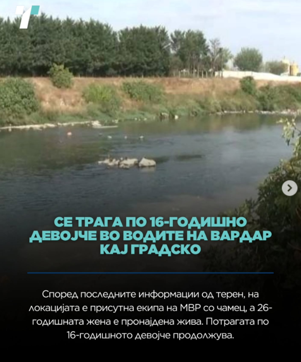 Денеска, во 16:42 часот, на бројот за итни повици беше примена пријава за две потонати женски лица, на возраст од 16 и 26 години, во реката Вардар, во близина на селото Уланци, Општина Градско. Пријавата ја поднесе сестрата на 16-годишното девојче, која во видно вознемирена состојба побара итна помош, информира Центарот за управување со кризи (ЦУК).