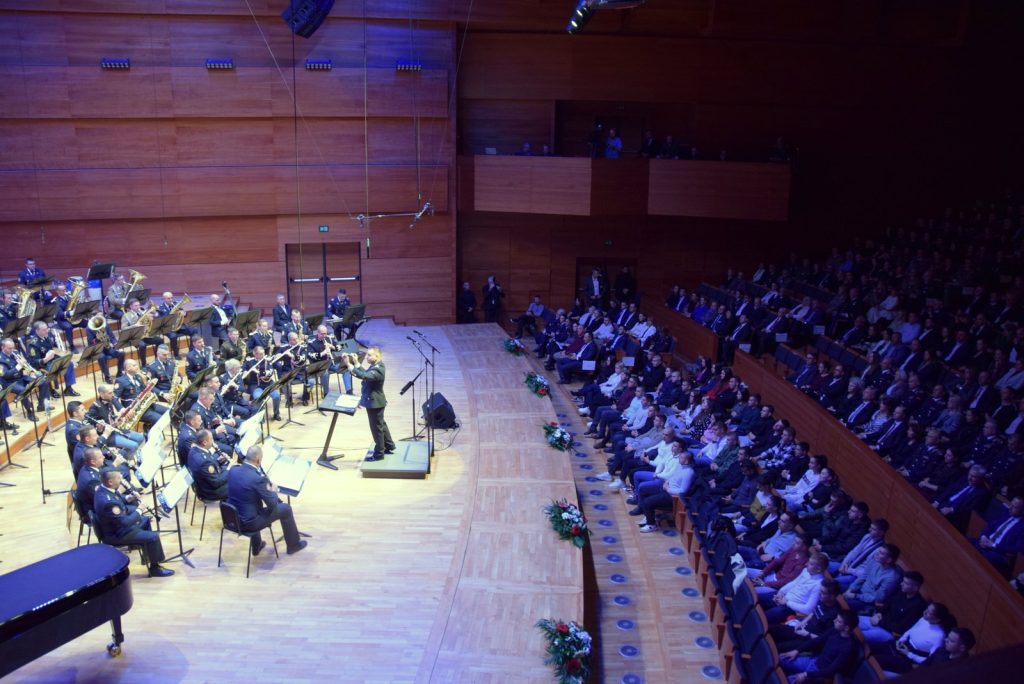 Публиката уживаше во синхронизираната изведба на македонски и светски композиции, по интонирањето на државната химна. Настанот, кој е дел од меѓуармиската соработка, има за цел да го истакне партнерството и пријателството меѓу земјите, традиционално организирајќи го во пресрет на Нова година.
