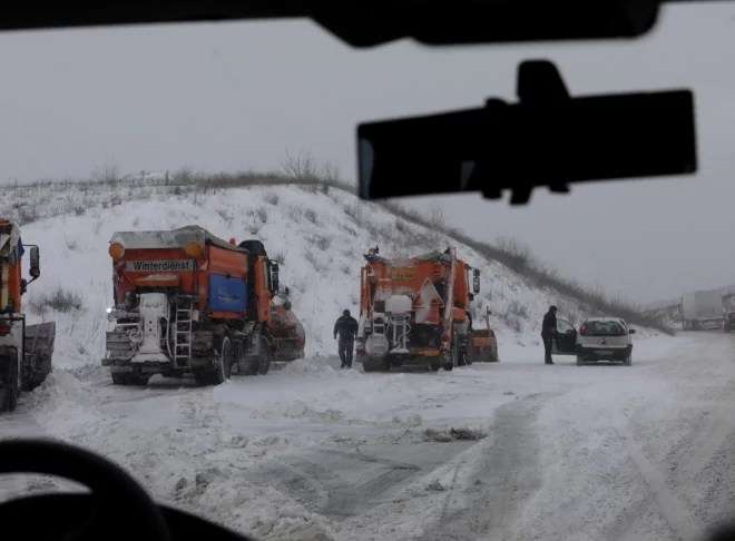 Причината за прекинот е излизгување на машина за чистење снег, што го попречило нормалното движење на возилата. Екипи се на терен и активно работат на расчистување и враќање на сообраќајот во нормала.