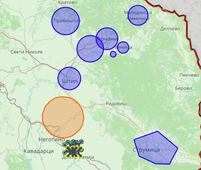 Во соопштението на МВР се наведува дека е поставена забрана за вршење на било какви операции со воздухоплови без екипаж (дронови) на територијата на следните населени места: