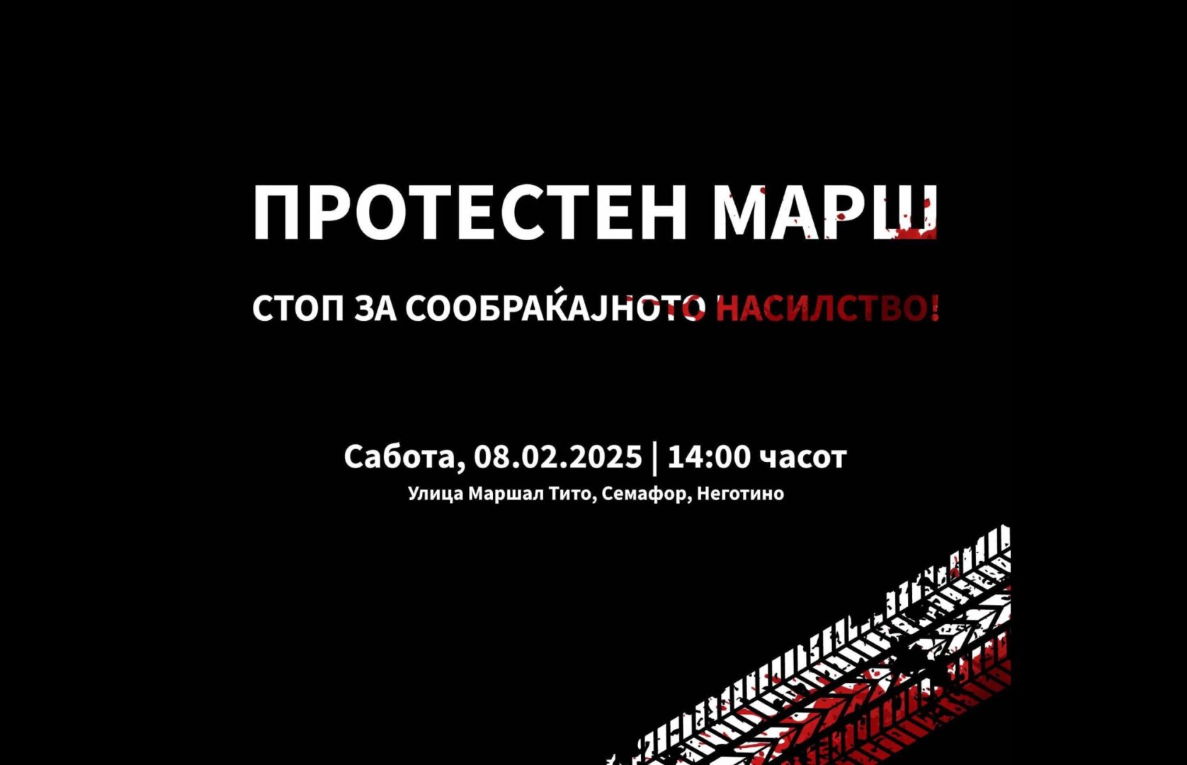 Денес во Неготино ќе се одржи протестен марш под мотото „Стоп за сообраќајното насилство“, организиран во чест на Фросина Кулакова, која загина откако беше прегазена во Скопје.