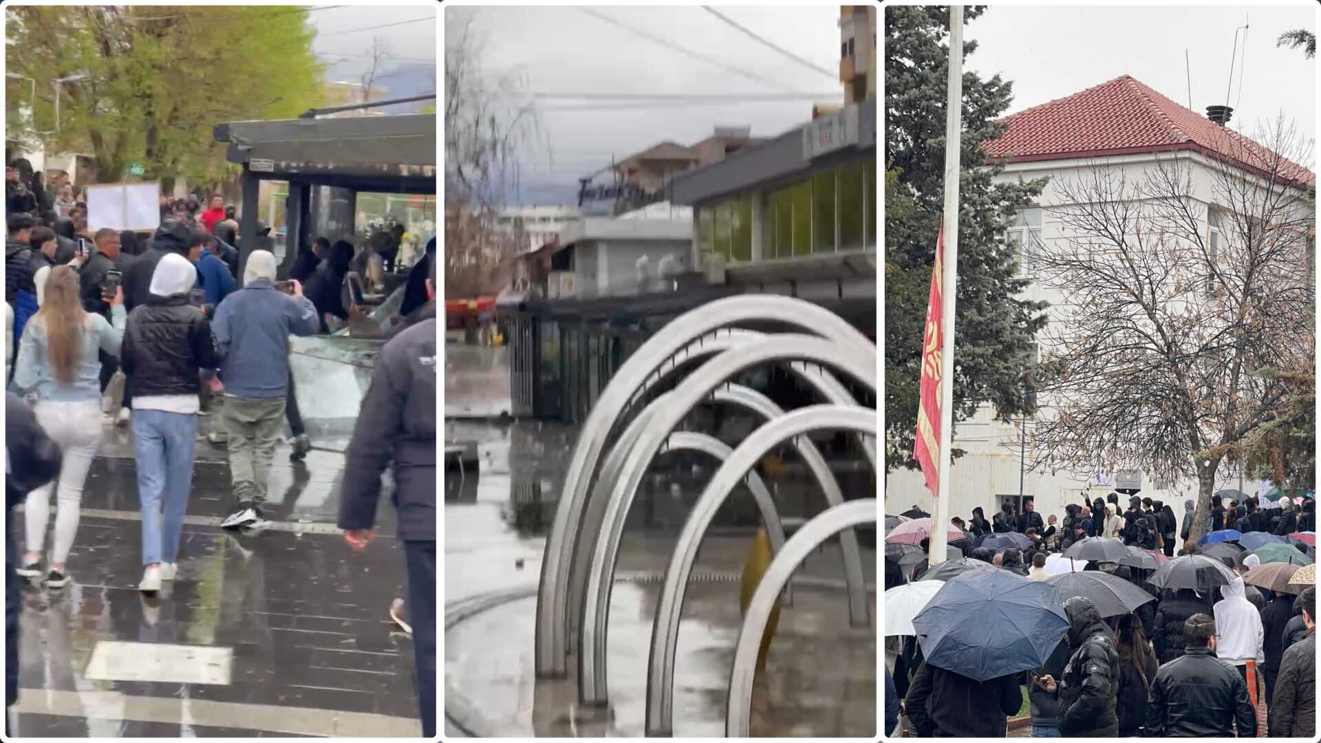 И покрај лошите временски услови, собирот што започна во 13 часот прерасна во масовен протест. Демонстрантите го бараат градоначалникот, кршат контејнери и упатуваат пораки на гнев кон институциите. Додека се движат кон зградата на Општина Кочани, гласно извикуваат „Убијци, убијци!“