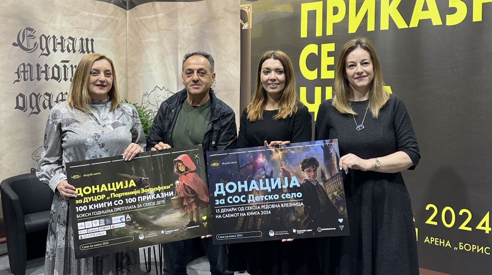 Оваа донација е продолжување на хуманитарната акција која се спроведува во текот на целиот Саем на книга 2024, преку која 15 денари од секоја продадена редовна влезница се одвојуваат за помош на СОС Детското село.