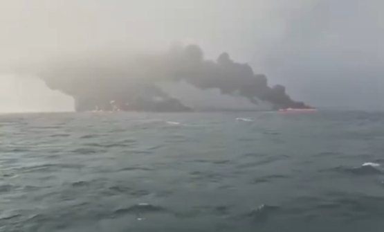 На местото на настанот се наоѓаат чамци за спасување и противпожарни екипи, додека спасувачката операција ја координира крајбрежната стража.