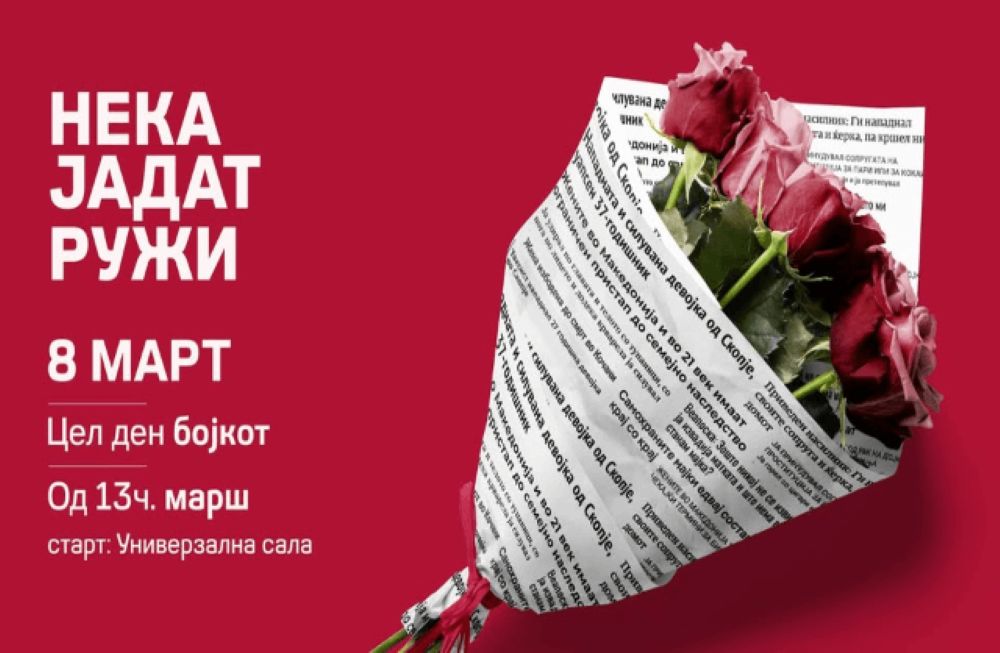 Овој 8 Март не сакаме ружи. Што ќе ни се ружи кога немаме за леб? Не е време за симболични гестови и излитени фрази. Живееме во нехуман и неодржлив систем базиран на системско силеџиство што ни ги окупира улиците, домовите, болниците, училиштата, институциите, јавните простори и социјалните медиуми и ни ги ограничува одлуките и можностите, сегашноста и иднината, пишува во најавата за маршот, кој утре, на 8 Март, на меѓународниот ден на правата на жените, го организираат повеќе граѓански организации.