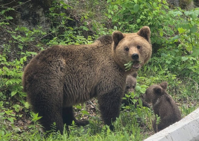 Иако оваа мајка со мечињата е во националниот парк Маврово, веројатно недостигот на храна во шумите како што посочија и од националниот парк Шар планина пред неколку дена е причина што тие доаѓаат блиску до патиштата и домовите на луѓето.