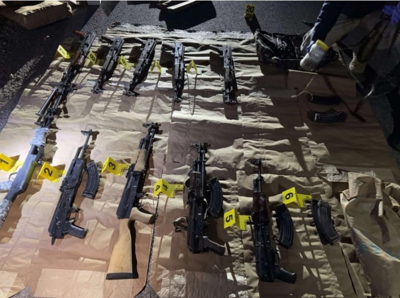 Од Министерството за внатрешни работи информираат дека пронајдени се еден пушкомитралез, девет автоматски пушки, повеќе празни рамки за автоматска пушка и реденик за пушкомитралез, две рамки за автоматска пушка со куршуми, една тегла со муниција, ранец и други предмети.