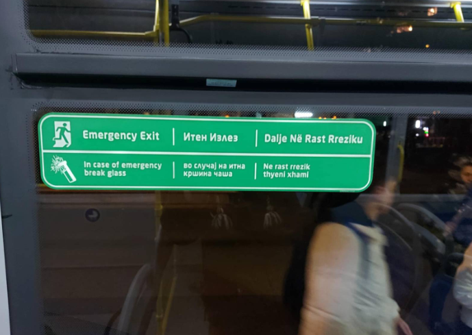 Автобусите пристигнаа со налепници на македонски и албански јазик, но со несоодветни преводи, што предизвика потсмешливи реакции кај граѓаните. На пример, наместо „во случај на итна ситуација, скршете го стаклото“, една од пораките звучеше како упатство за кршење чаша.