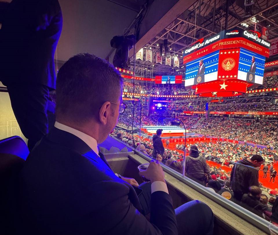 „Заедно со претседателот на Републиканската партија на САД, Мајкл Ватли во Вип ложата во Вашингтон ги следиме инаугуративните активности на новиот американски претседател, Доналд Трамп“, напиша вечерва на социјалните мрежи Христијан Мицкоски.