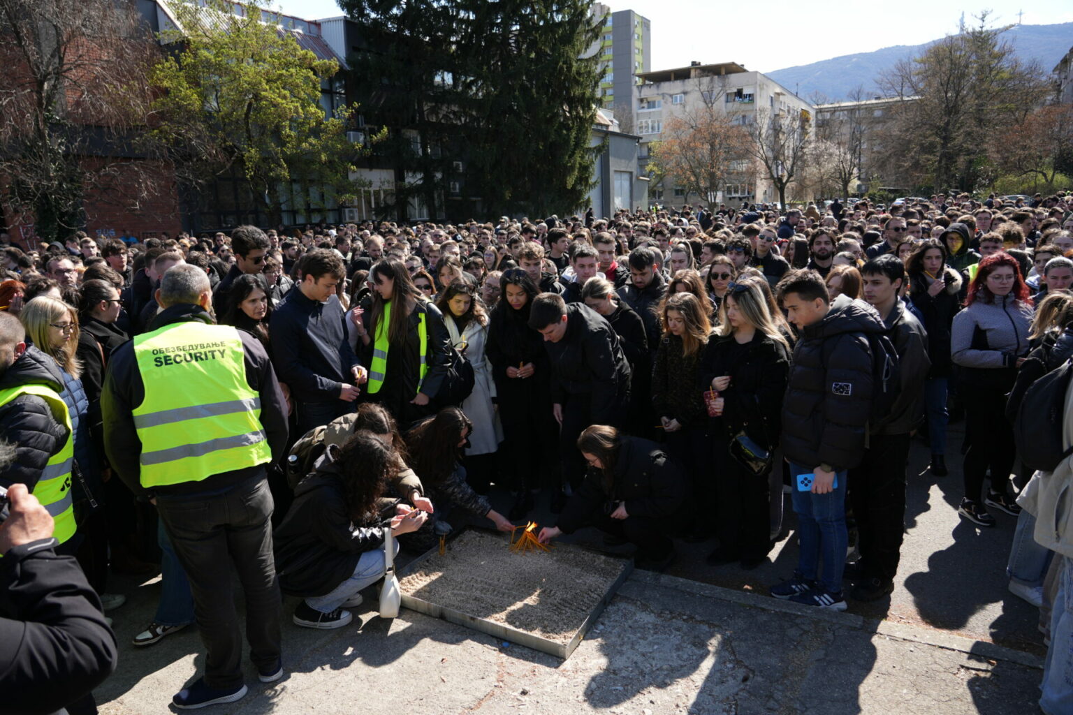 Студентите денес повторно се собраа кај кампусот на техничките факултети во знак на почит кон жртвите од трагичниот пожар во Кочани. За разлика од вчерашниот собир, овојпат немаше говори, ниту политичари – само седумминутен молк во тишина.