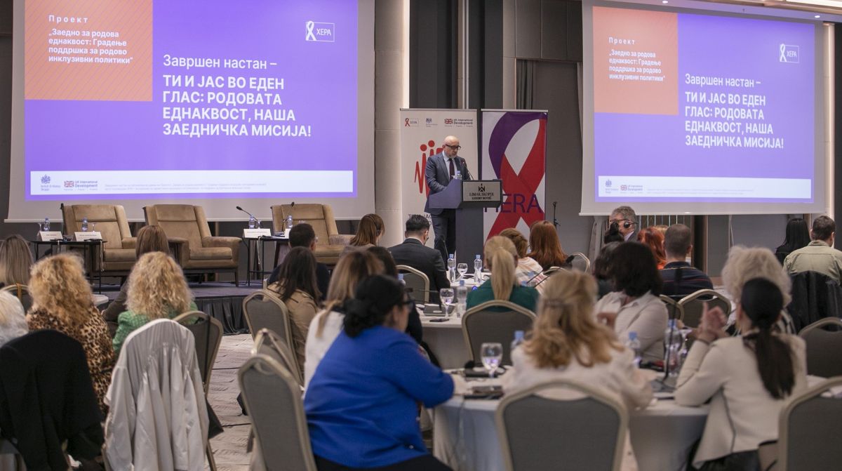 Под мотото „Ти и јас во еден глас: Родовата еднаквост – наша заедничка мисија“, денес во Скопје, се одржа завршниот настан на проектот „Заедно за родова еднаквост: Градење поддршка за родово инклузивни политики“, во организација на ХЕРА.