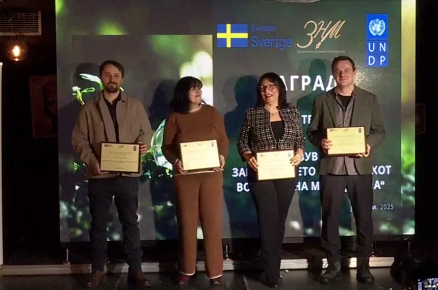 Здружението на новинарите на Македонија (ЗНМ) во соработка со Програмата за развој на Обединетите нации (УНДП) денеска свечено ги додели наградите за 2024 година за новинарски стории на тема: „Справување со загадувањето на воздухот во РС Македонија“.