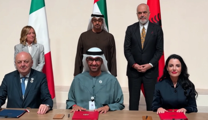 Договорот, кој од албанска страна го потпиша вицепремиерката и министерка за инфраструктура и енергетика, Белинда Балуку ги обединува земјите во стратешки сојуз за обновливи извори на енергија. На документот потпис ставихја и Султан Ал Џабер, министер за индустрија и напредна технологија на ОАЕ и претседател на Масдар, и Гилберто Пичето Фратини, италијански министер за животна средина и енергетска безбедност, јави АТА.