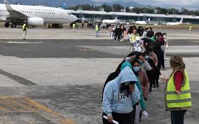 Двајца американски официјални лица, кои сакаа да останат анонимни, изјавија дека авионот слетал во Гватемала во понеделникот попладне по лет од Тексас. Официјален претставник на Гватемала изјави за Ројтерс дека во воениот транспортен авион имало 64 луѓе.