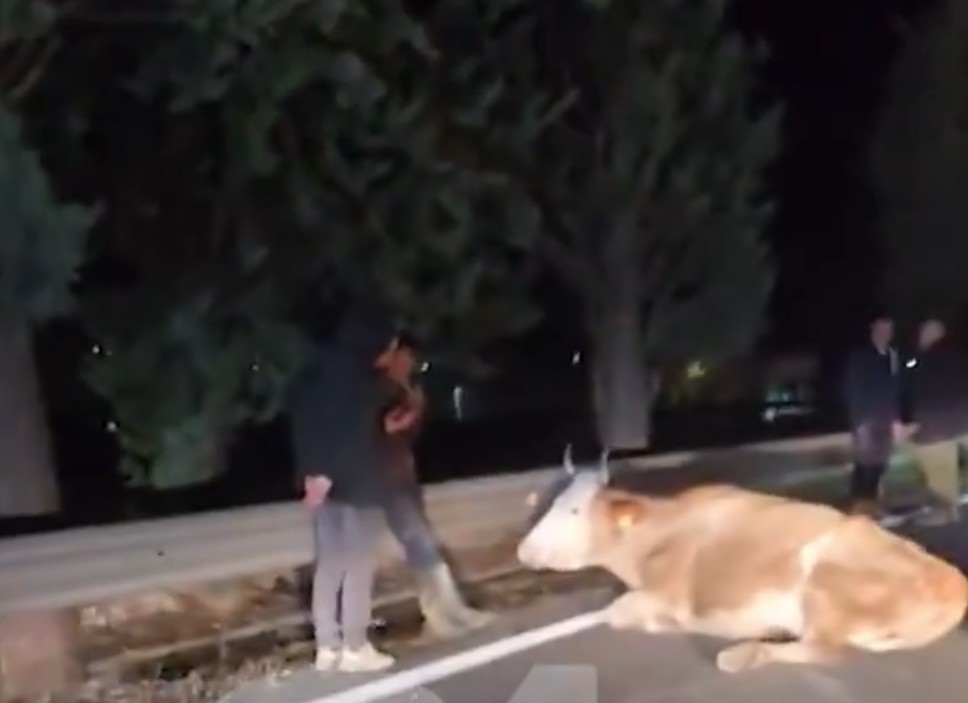 ТВ 21 на социјалните мрежи сподели видео на кое се гледаат големи колони и застој во сообраќајот, но и неколку крави кои лежат на автопатот.