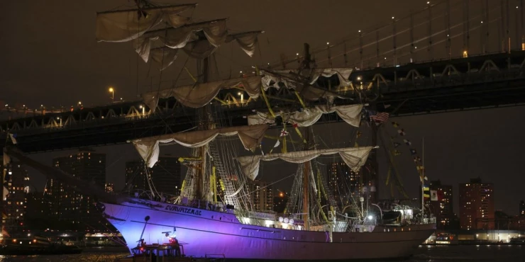 Училишниот брод Cuauhtemoc е изграден во бродоградилиштето Селаја во Билбао, Шпанија во 1981 година. Неговата посета на Њујорк требаше да заврши во сабота навечер.