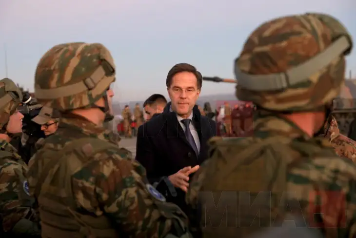 Генералниот секретар на НАТО Марк Руте ја посети воената база во Ново Село, Бугарија, каде што е сместена мултинационална единица формирана како одговор на руската инвазија на Украина во 2022 година.