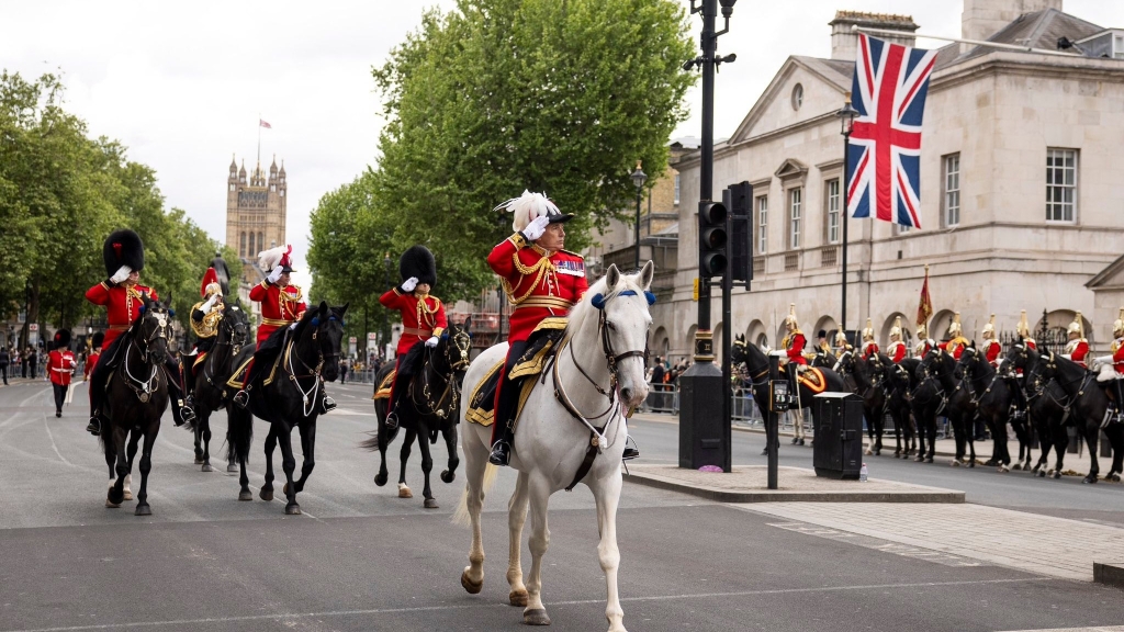 Кралот Чарлс оддаде почит на воените единици додека маршираа пред Бакингемската палата. До него беа кралицата Камила, принцот Вилијам со сопругата Кејт, премиерот Кир Стармер и ветерани.