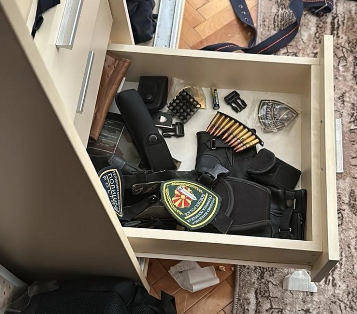 Како што соопшти МВР, при претресот пронајдени се пиштол, револвер, две рамки за пиштол, 321 парчиња разновидна муниција, над 20.000 евра и службена документација, односно оперативни извештаи кои во себе содржат класифицирани информации, меѓу другото и за граничното работење, анализи на рутите за мигранти итн.