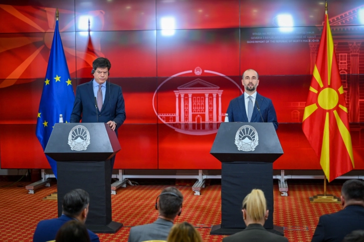 Министерот за европски прашања Орхан Муртезани и амбасадорот и шеф на Делегацијата на Европската Унија во Скопје, Михалис Рокас, денеска презентираат мерки од Планот за раст за Западен Балкан и Реформската агенда 2024-2027 за Северна Македонија.