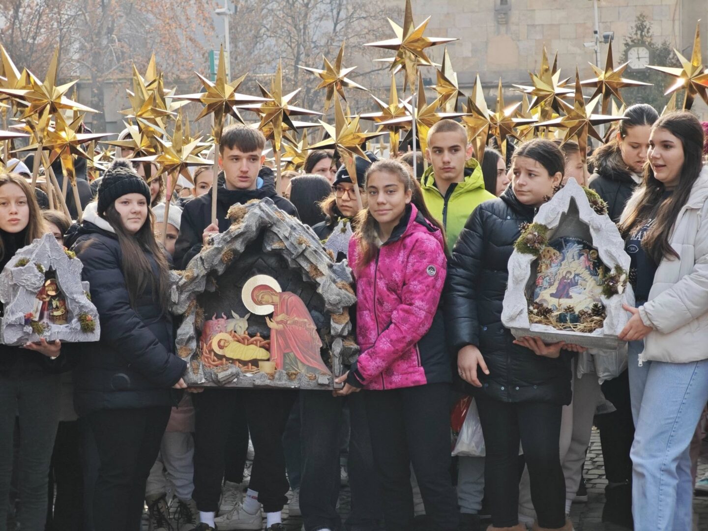 Во Скопје поворката почна од Старата железничка станица, а децата, носејќи божиќни ѕвезди и пеејќи ја песната, чекореа по улицата Македонија до централниот плоштад, каде што во близина на новогодишната елка уште минатата година беше поставена макета од божиќна пештера.