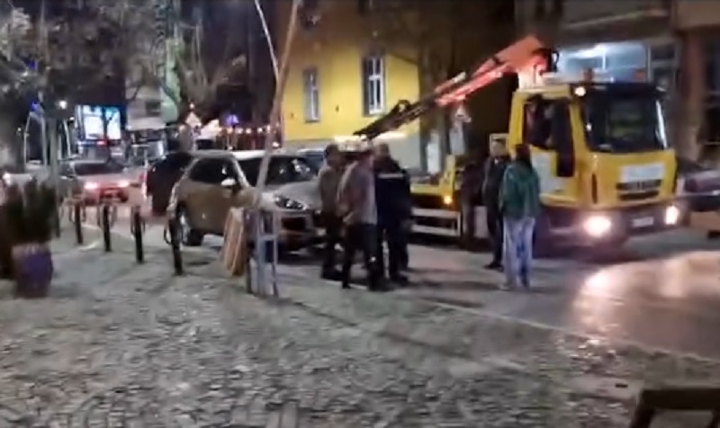 Полицискиот службеник С.Н., со специјално возило „пајак“ и двајца вработени од ЈП за јавни паркиралишта на Општина Центар, се упатиле на наведеното место, каде што било затекнато возилото и револтирана група граѓани кои барале возилото да биде подигнато. На местото на настанот, од угостителски објект излегле две лица кои се легитимирале како полициски службеници и изјавиле дека возилото е службено. Полицискиот службеник С.Н. им наредил веднаш да го отстранат возилото и да го паркираат на соодветно место, по што влегол во кабината на „пајак“ возилото со цел да провери дали возилото навистина е службено.