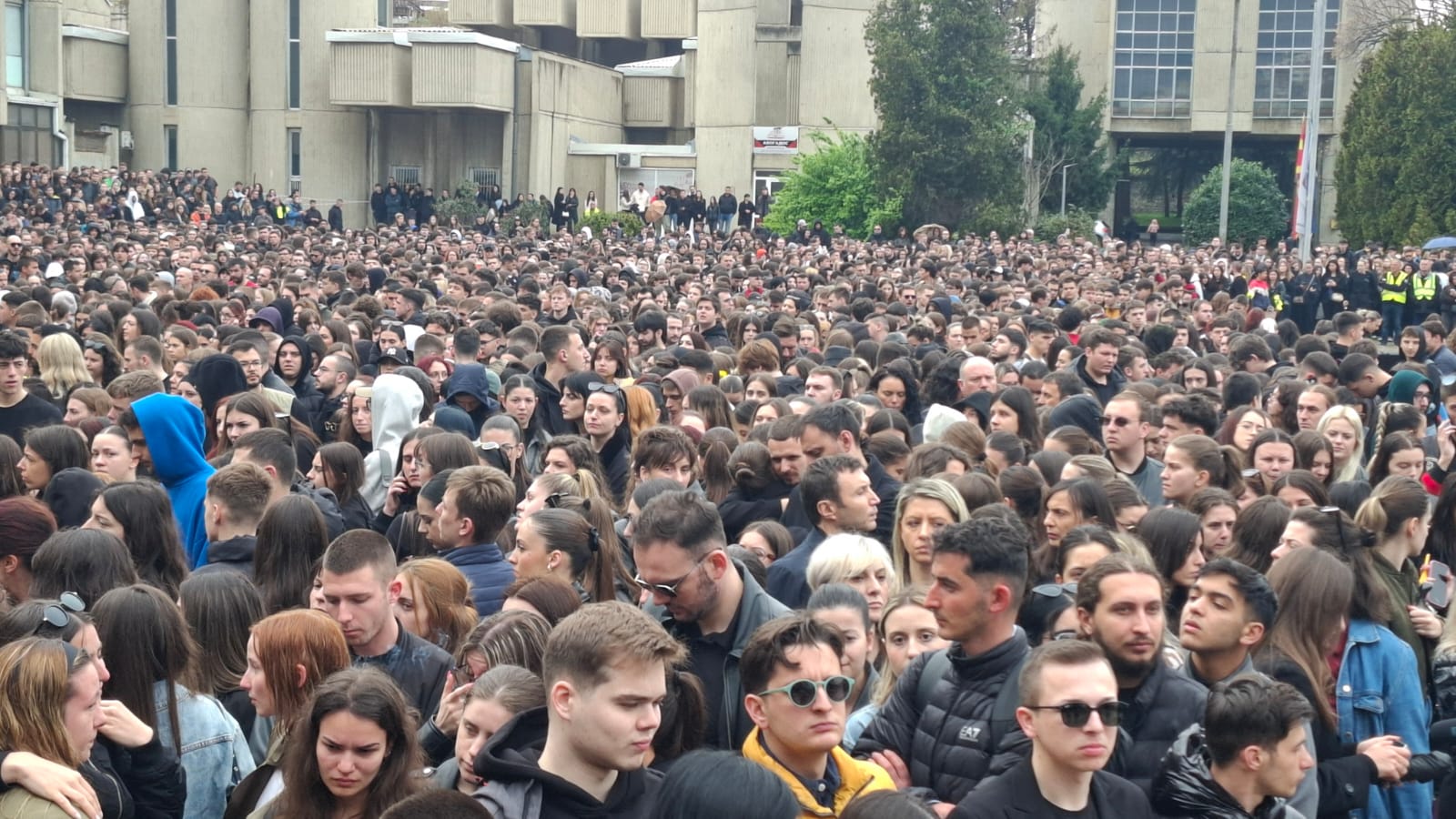 Заедничкиот час започна со седумминутен молк точно напладне на собирот на студентите и учениците од средните скопски училишта пред платото на Универзитетот „Свети Кирил и Методиј“ (УКИМ) во Скопје, во знак на почит на жртвите од пожарот во дискотеката во Кочани.