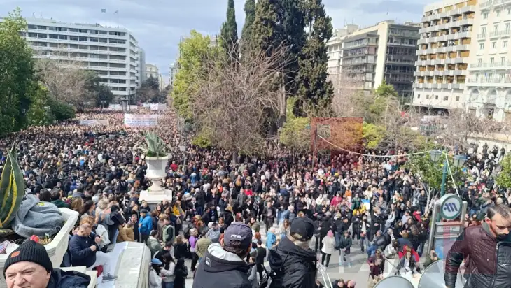 Иако протестот беше закажан за 11 часот по локално време, час и половина пред официјалниот почеток, плоштадот пред грчкиот парламент беше веќе полн со граѓани на сите возрасти, млади, студенти, пензионери, семејства со деца.