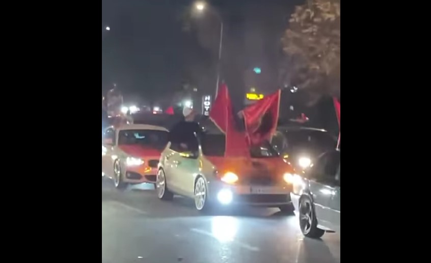 Со колони возила со развиорени знамиња на Албанија вечерва низ скопските улици се славеше Денот на албанското знаме.