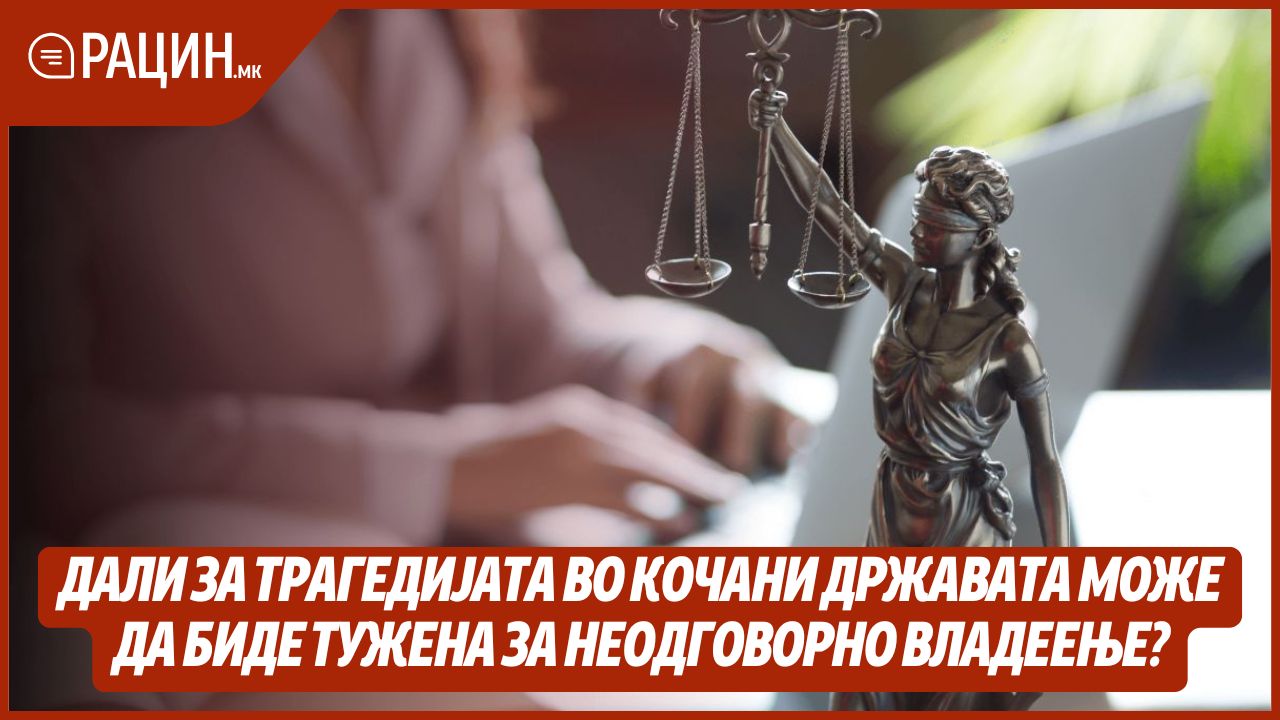 Прашањето е дали семејствата на загинатите во Кочани и повредените во пожарот имаат правна и законска можност да ја тужат државата за трагичниот наста, кој, и според официјалните лица, е последица на причинско-последична врска заради ерозија на системот за спроведување и контрола на безбедносните протоколи во објекти со дејности за кои се неопходни лиценци и дозволи за  работа.