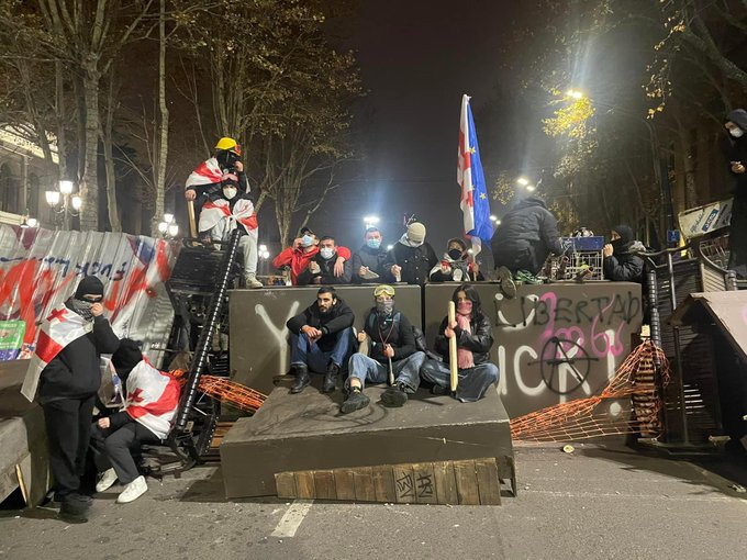 Илјадници демонстранти се собраа доцна во саботата во главниот град на Грузија Тбилиси, градејќи барикади, кршејќи прозорци и поставувајќи огномети пред парламентот, во знак на протест против владата која се откажа преговорите за пристап во ЕУ.