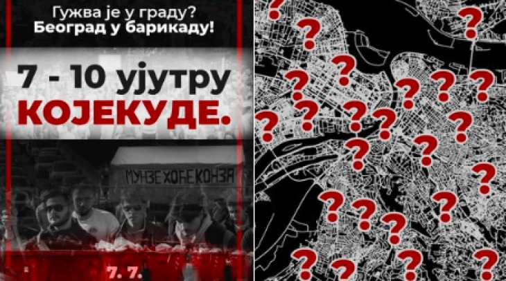 „Има метеж во градот? Белград на барикади“, објавија студентите во блокада на социјалните мрежи.